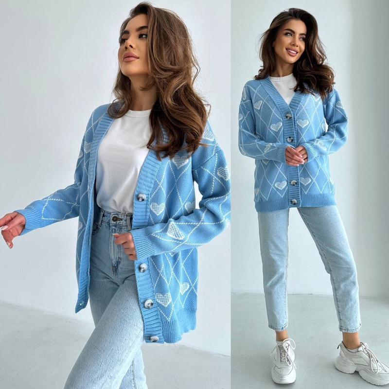 соКардиган сердечко 💙 Машинная вязка Размер единый 42-48 50% акрил, 50% вовна Цвет молоко, голубой, фисташка Производство Турция🇹🇷 Фото и видео наживо! 🔹Длина по спинке 74 см 🔹Полуобхват по груди 56 см 🔹Длина рукава от плеча 48 см 🔹Длина рукава от горловины 70 см