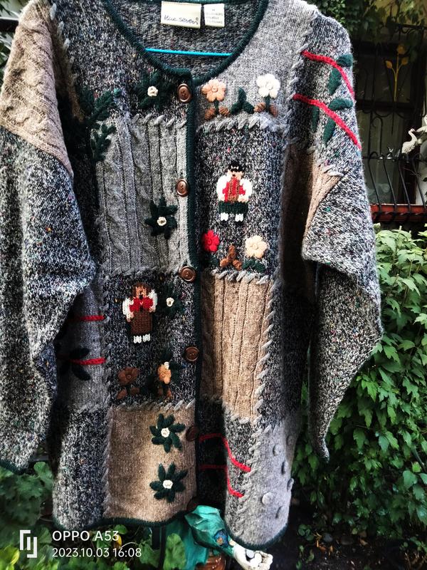 Трикотаж не тонкий, теплый. Вышивка. Без дефектов. Замеры в груди 61 см низ 64 см длина 73 см рукав 73 см приспущен от горловины