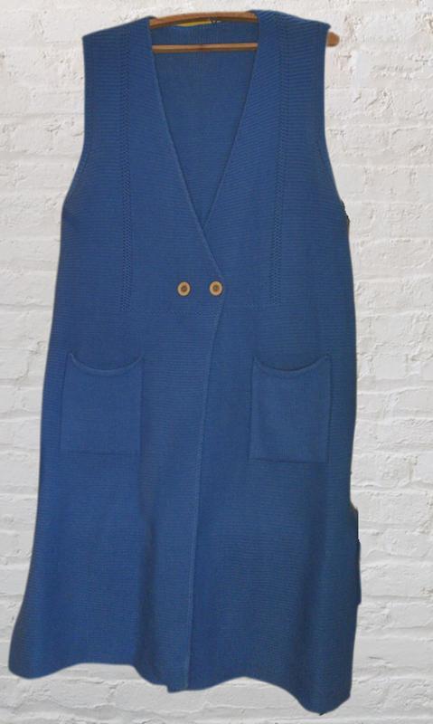 Цвет: синий Размер: Длина: 105 см Полуобхват груди: 64 см Полуобхват талии: 67 см Материал: шерсть Состояние: великолепный Особенности: Застежка на пуговицах Карманы