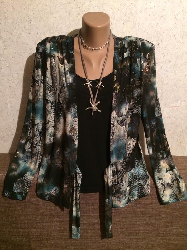 Новое состояние абсолютно! ПОГ 56 см длина 65 см немного тянется благодаря эластану. Цена ниже номинала, кофточка с Польши. Текстура ткани бархатистый трикотаж с эластаном. Имитация комплекта - жакета и черного цвета кофточки