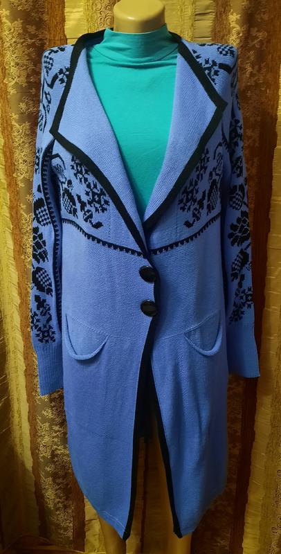 Кардиган трикотажный, теплый. Застежка - две пуговицы. Цвет голубой. 44,46,48,50,52р.