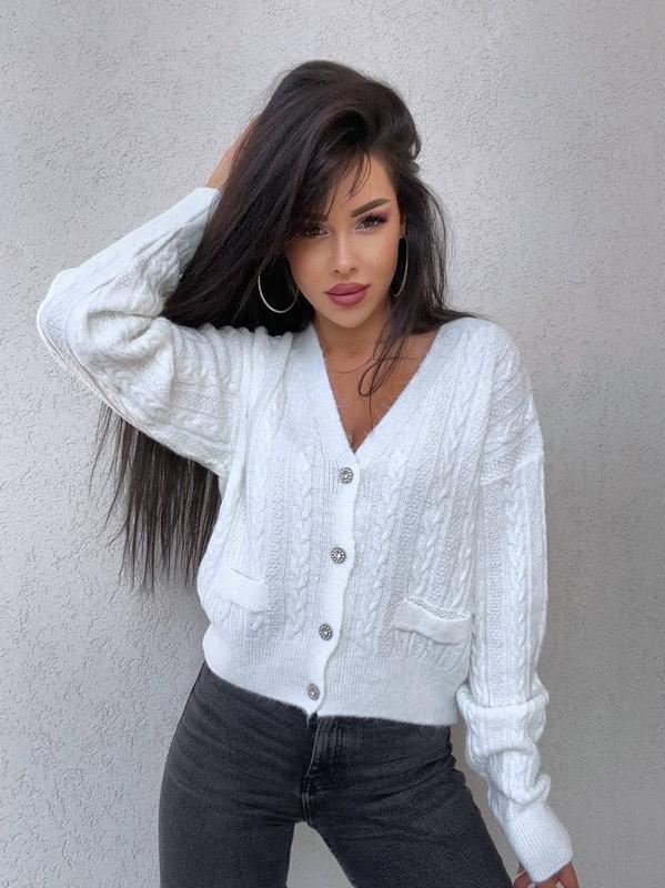Кардиган Томас Невероятно мягкий и теплый 🥰 Размер единый 42-46 Мелкая машинная вязка 30% шерсть, 33% акрил, 37% полиэстер Пуговицы рабочие Цвет - белый Производство Турция 🇹🇷 Все фото наживо👌 🔹 Длина по спинке 53 см 🔹 Полуобхват по груди 55 см 🔹 Длина рукава от плечевого шва 58 см 🔹 Длина рукава от горловины 75 см