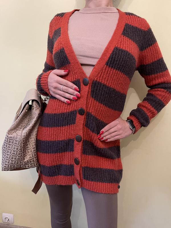 Комфортная, теплая и удобная вещь. Подойдет как для офиса, так и для прогулок. Не очень толстая, удобно носить под верхней одеждой.По длине прикрывает бедра.