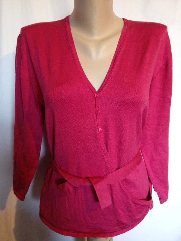кофта ,кардиган ,чудова якість,бренд,80%натуральний шовк,ніжний трикотаж,колір як на перших двох фото,малиновий ,оригінальний крій на запах зпереду,нарядна кофта,довжина62,пог50,рукав47см,трикотаж тягнеться