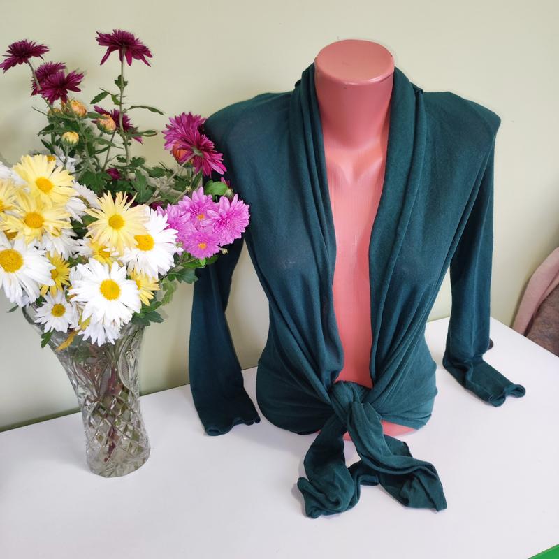 Предлагаю вашему вниманию кардиган, можно завязывать спереди, можно на запах сзади Размер универсальный Стан - идеальный Ткань приятная на ощупь, бирки срезанные Цвет зеленый (бутилка)