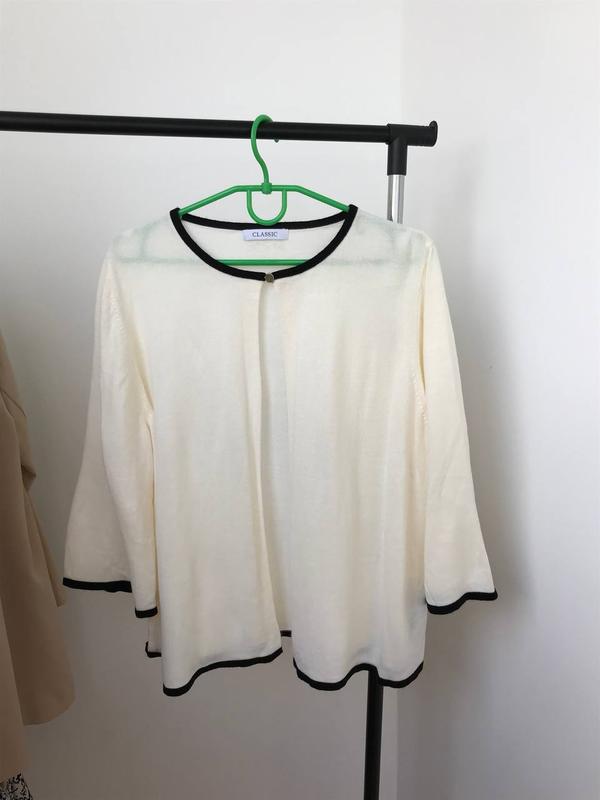 Кофта тоненькая. Приятная ткань. Рукава немного укорочены и расширены. Размер - смотрите по замерам, подойдет на M-L Длина 53 см; Длина рукава 44 см Полуобхват груди 54 см