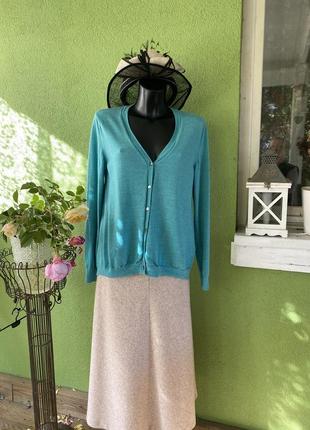 Качественная красивая кофточка от Peter Hahn. Цвет тиффани(бирюзовый).Склад: шерсть-100/. Размер по наборке-42. Замеры: длина-64 см, ПОГ-49 см, ПОБ-48см, рукав-61 см. Невероятное качество!