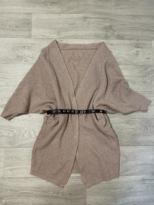Кофта без застежки, можна носить под ремень,рукав 3/4,меет два кармана, имеет незначительные следы носки, без дефектов.Ремень в стоимость не входит-продается отдельно
