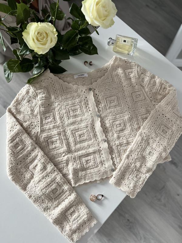 Дуже стильний мереживний кардиган в бежевому кольорі🌪️
