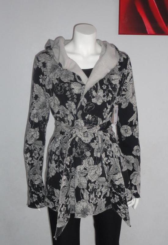 Бренд Lucky Brand был основан дизайнерами Джином и Барри в 1990г. Обладая здоровым чувств юмора и рок-н-рольными корнями марка Lucky Brand гордится своим независимым взглядом на моду и стиль.На сегодняшний день бренд насчитывает более 110 собственных магазинов в США и 3 магазина зарубежом. Бренд выпускает коллекции одежды, джинсов, обуви,сумок, акссессуаров в стиле 70-х годов.«Звездные» клиенты бренда – Бен Аффлек, Холли Берри,Бред Питт, Сальма Хайек, Сандра Баллок,Дженифер Лав Хьюитт, Джессика Симпсон, Джон Траволта и многие другие предпочитают качество и практичность одежды этого бренда. ++++++++++++++++++++++++++++++++++++++++++++++++++++++++++++++++++++++++++++++++++++++++++++++++ Абсолютно новый трикотажный кардиган.Джерси-100%котон,мягкий,средней плотности.Ткань как на толстовках.Изнанка плетения *махровка без ворса*.Очень милая расцветка-серый цветочный принт на черном фоне.Очень и очень уютная вещичка,С капюшонам,карманами,встроченным в спинку поясом.На запАх,без пуговиц,подвязывается пояском.Отлично к разнообразным джинсовым вариантам.Подробности фасона-на фото.Все обьяснения дам с удовольствием в *обсудить лот*. Маркировка L,на наш 48,48-50.За счет запахивающегося фасона несколькоразмерный.Смотрите мерки на последнем фото. Новый,с бирками.Стоил в США 99$+TAX Длина по спинке 74 см,расстояние по спинке между подмышками 55 cм,длина рукава 70 см