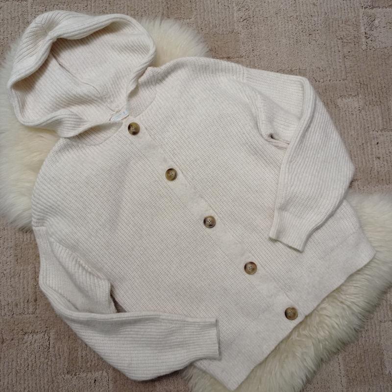Кофта с капюшоном, застежки на пуговицы, молочного цвета Размер указанный S Замеры на фото