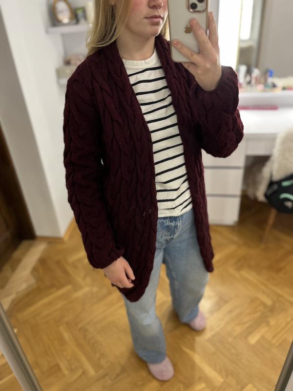 Темно бордовый связанный кардеган Ширина 100 Длина 90 Длина рукава 57
