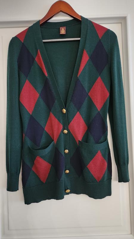 класичний кардиган з натуральної тонкої вовни, виробництва Італії. Тепла, зручна та дуже якісна річ, гарно комбінується з білою або чорною сорочкою. Є трохи катишки біля лівої кишені. Оригинал. Довжина 70 см.