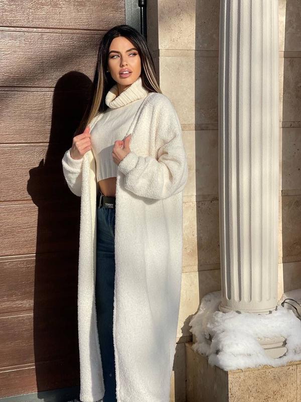 Кардиган, фото реал ⠀ ▫️Ткань: барашик на велюре ▫️Размеры: 42-46 универсал ▫️Цвета: молочный Замеры: ОГ 130 см Длина 120 см Рукав 65 см ⠀ Модель 232
