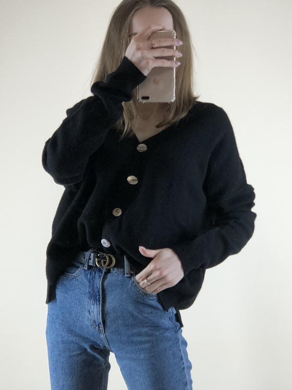 Черный базовый кардиган🖤 В идеальном состоянии❗️ Размер указан С, по факту больше М-Л По деталям в дырект💌