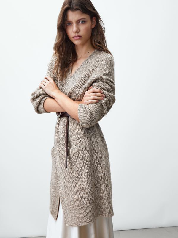 Подовжений кардиган Massimo Dutti Новый, размер L Модель без застежек, свободная или под поясок. Рукав от горловины, без плечевых швов, что достаточно удобно - подойдет на любой нижний слой одежды Цвет песочный Состав: 46% полиамид, 28% шерсть, 17% вискоза, 6% лиоцелл, 3% кашемир