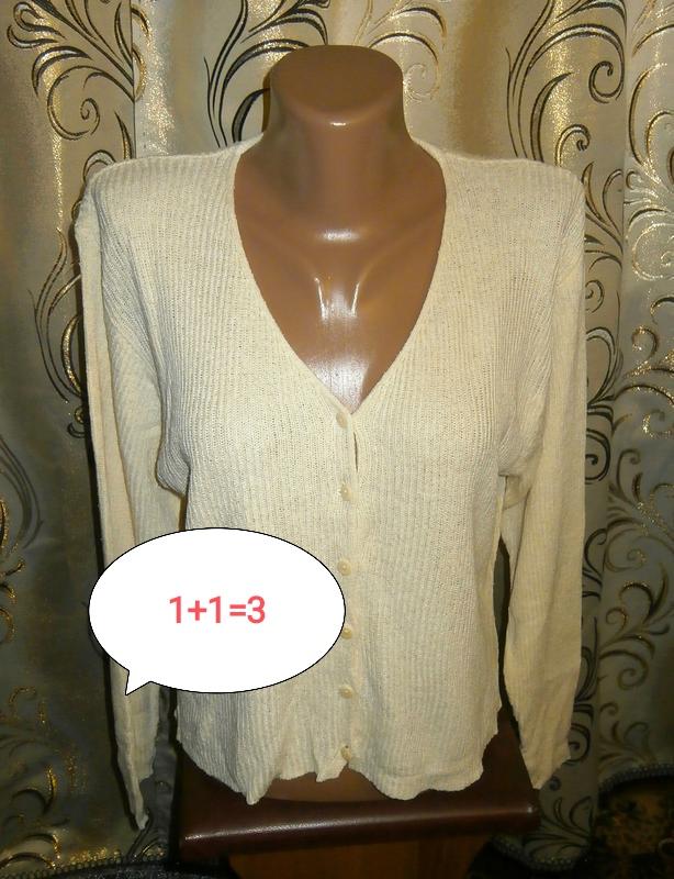 АКЦІЯ "1+1=3" на всі товари з такою позначкою (окрім нових речей). У якості подарунка буде річ за найменшою вартістю. * умови у продавця Жіноча кофта Panda. Колір - молочний. Розмір - M. Заміри: плечі 40 см, напівобхват грудей 48 см, довжина рукава 56 см, довжина 52 см. Склад: 100% reine seide. Стан задовільний