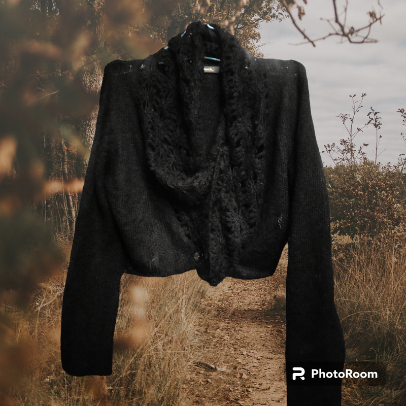Мохерный кардиган укороченный, укороченная пуговица, передняя планка ажурная цветочная вязка из мохера, тонкий праздничный пушистый. ПОГ 52 Д 47