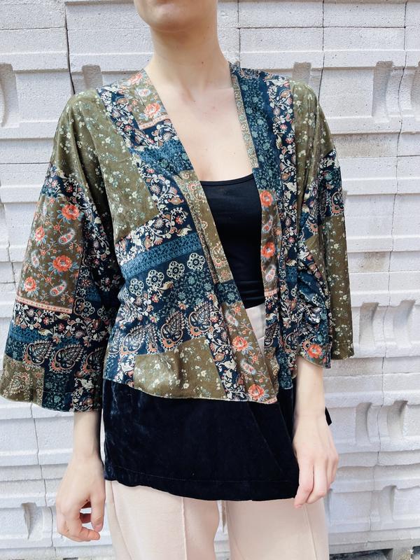 Накидка кольру хакі в квітковий принт, тканина під вільвет, без капманів. Річ нова, з біркою.