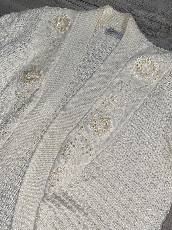 Винтажная кофта кардиган с аппликацией JCS, XL. Длина по спинке 60см, рукав 53,5см, плечи 47см, ПОГ 55см