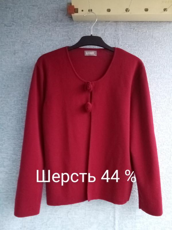 Женский кардиган/накидка LINDON. Застегивается вверху на два крючка, которые задекорированы цветочками из этой же ткани. Состав 44 % шерсть, 44 % акрил, 10 % полиамид, 2% эластан. Смесевой состав ткани натуральной с искусственной позволяет сохранить ценные качества натурального волокна и значительно увеличить износоустойчивость, упростить уход и улучшить качества ткани за счёт искусственных волокон. Цвет вживую красивее чем на фото . Не алый, а темно - красный, ближе к рубиновому , приглушенный. Наиболее реальный цвет на фото 9. Смотрится элегантнои и интересно. Заявлен размер L. Но проходит и XL . Замеры плечи 42,5 см, грудь 52,5 см, низ 51 см. Длина 62 см. Рукав 59 см.