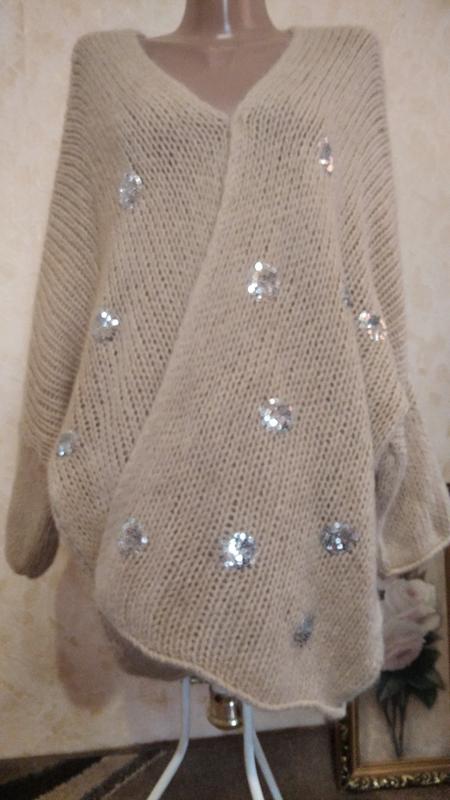 Итальянский кардиган оверсайз из мягкой оригинальной пряжи бежевого цвета. Расшита пайетками. Оригинал, девиз фирмы : " Повседневная роскошь".Новый.