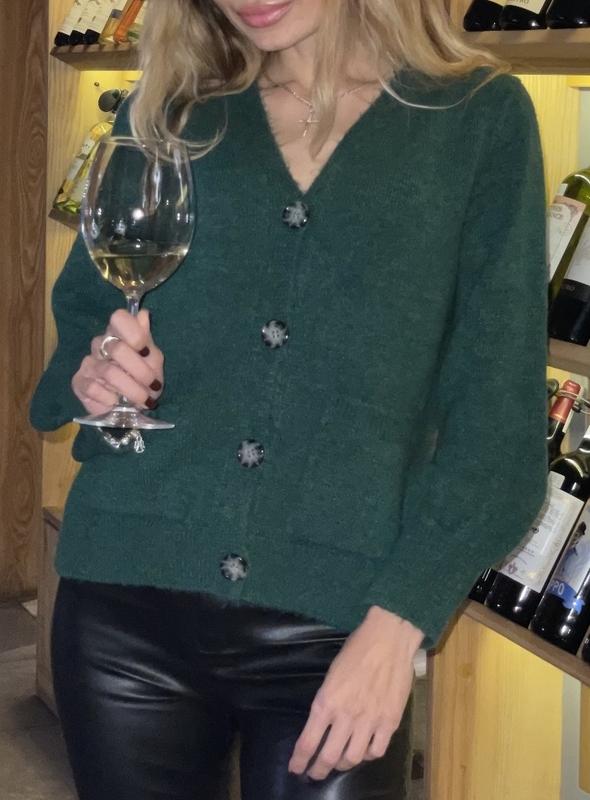 Теплий кардиган в ідеальному стані. Дуже гарний смарагдовий колір. Розмір С.