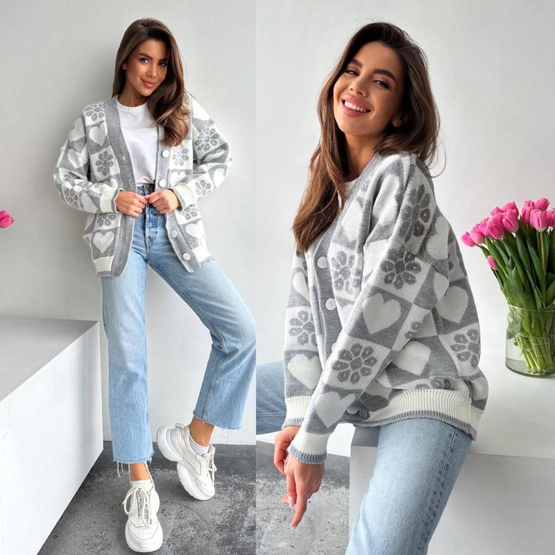 Теплий кардиган Серце Машинная вязка Размер единый 42-48 50% акрил, 50% вовна Цвет оливка, пудра, голубой, черный, серый Цена 1250грн 🔹Длина по спинке 68 см 🔹Полуобхват по груди 65 см 🔹Длина рукава от плеча 45 см 🔹Длина рукава от горловины 75 см