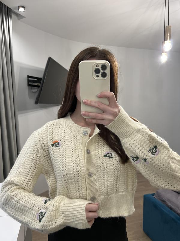 Вкорочений кардиган турецького бренду Divin з вишитими квіточками, гарна і приємна в‘язка