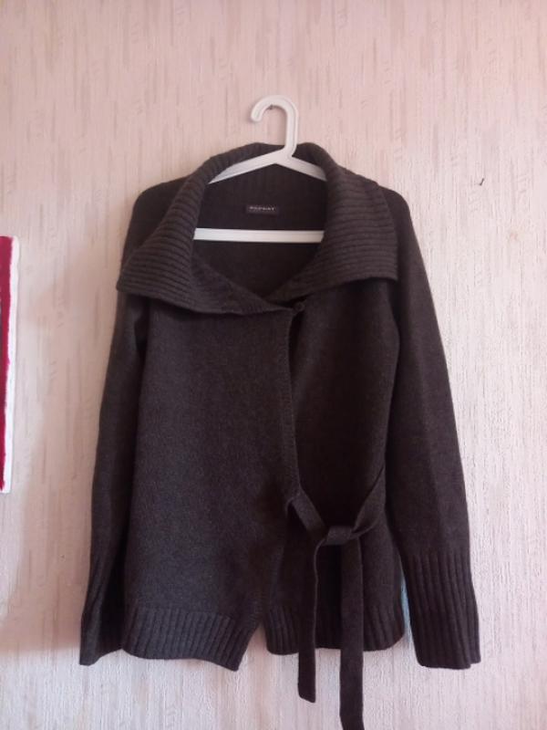 Вашему вниманию жакет из кашемира шоколадного цвета. ПОГ - 50 по спинке Рукав - 68 Длина - 60. Красивый воротник, оригинальная застежка, широкий манжет, нить толще, чем обычно, поэтому является более теплым. В идеальном состоянии, без нюансов и следов ношения.