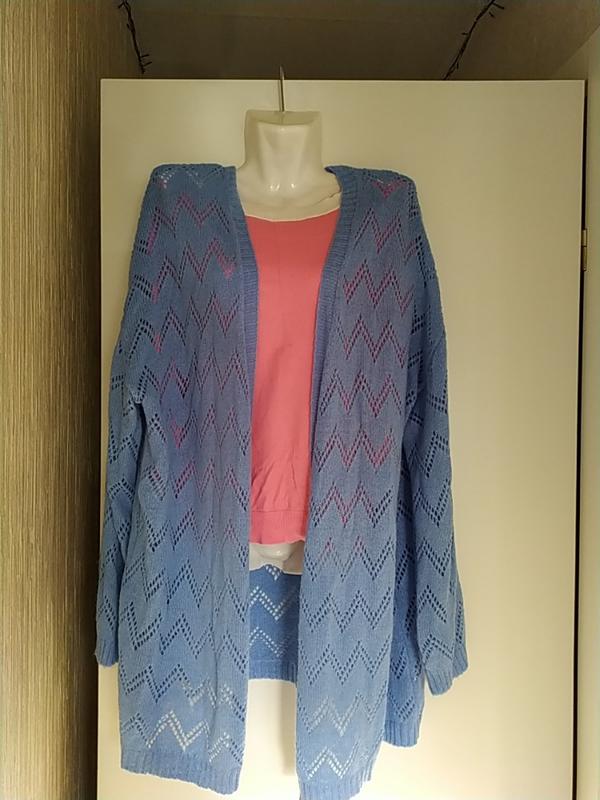 стан ідеальний. підійде і на М ( буде over size), і на XL . колір блакитний ( на фото трішки відрізняється).орієнтуйтеся по замірах: довжина 88-90 довжина рукава від горловини 81 ширина під рукавами 75( в складеному вигляді як на фото).