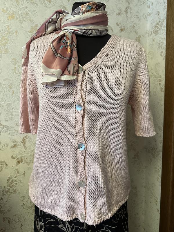 Плетена ніжна кофтинка. Хлопок с акрилом. Приятная к телу. М-L. Пуговицы перламутровые украсили, добавили изысканности. ПОГ - 51 Длина- 61 Стан хороший