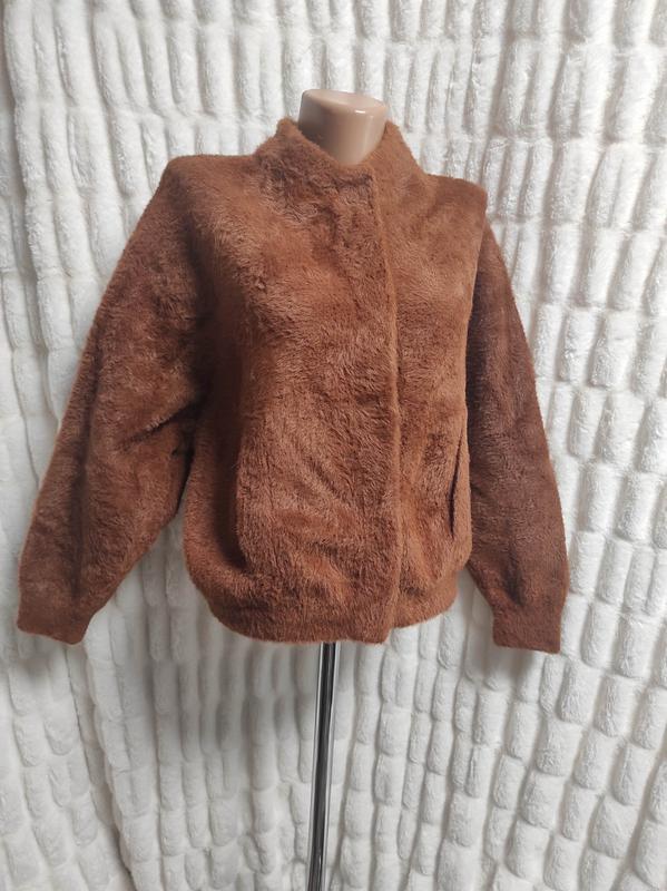 Застібка - кнопки. Без кишень. Теплий, і затишний, і дуже комфортний. Орієнтовні заміри по готовому виробу: Півобхват грудей - 56,5 см Довжина рукава від горловини- 67,5 см Довжина виробу по спині - 54 см Півобхват низу - 41 см Бирки зі складом тканини немає на виробі.
