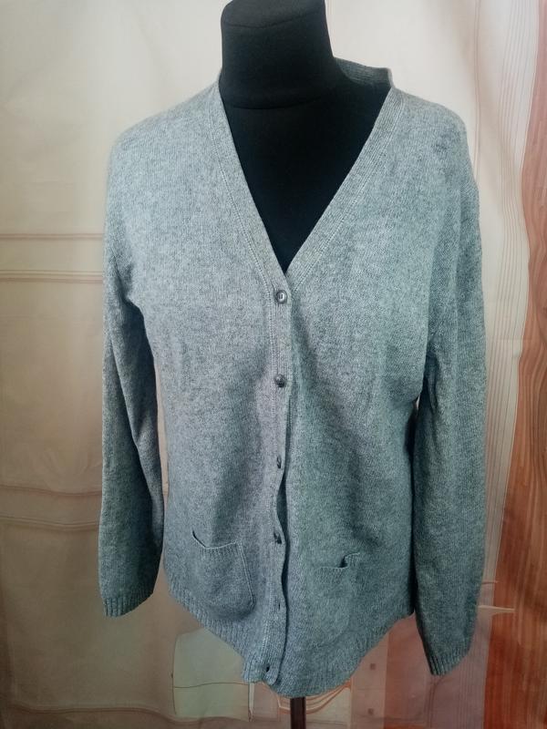 Кардиган из шерсти в хорошем состоянии дефектов нет Гудзики все есть в наличии, вещь немного колючая, но не критически, немного резинка снизу растянут Ног 54см Нот 52см Плечи 44см длина рукава 60 нор 15см Длина по спине 66см