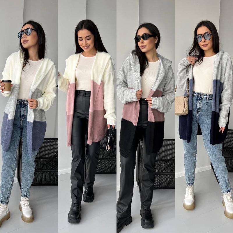 ✅ВСІ КОЛЬОРИ В НАЯВНОСТІ Кардиган Модель 5030 Розмір універсальний 44-52 Склад напіввовна Ціна 1150 грн Кольори: молоко+світла пудра+темна пудра, сірий+джинс+синій, молоко+сірий+джинс, сірий+темна пудра+чорний
