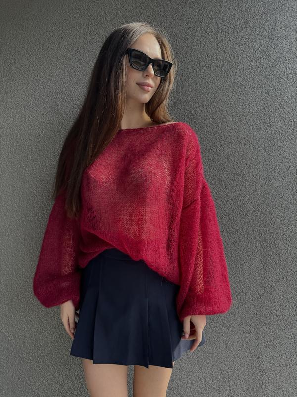 Итальянская пряжа,размер оверсайз подойдет на С-Л. Цвет красно-винный, тренд этого сезона! Ручная работа