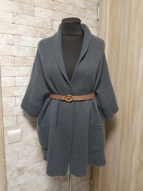 плотный, тяжёлый держит форму красивого тёмно серого цвета длина 68 рукав от ворота 43 ширина по спине 55