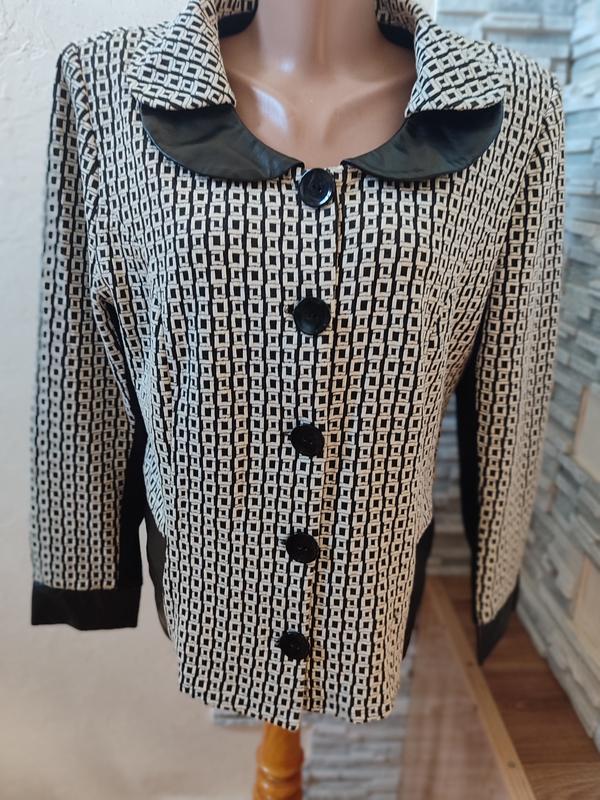 Пиджак-блуза,трикотаж с вставками єко кожи.без подклада.Нарядній.в отличном состояние.