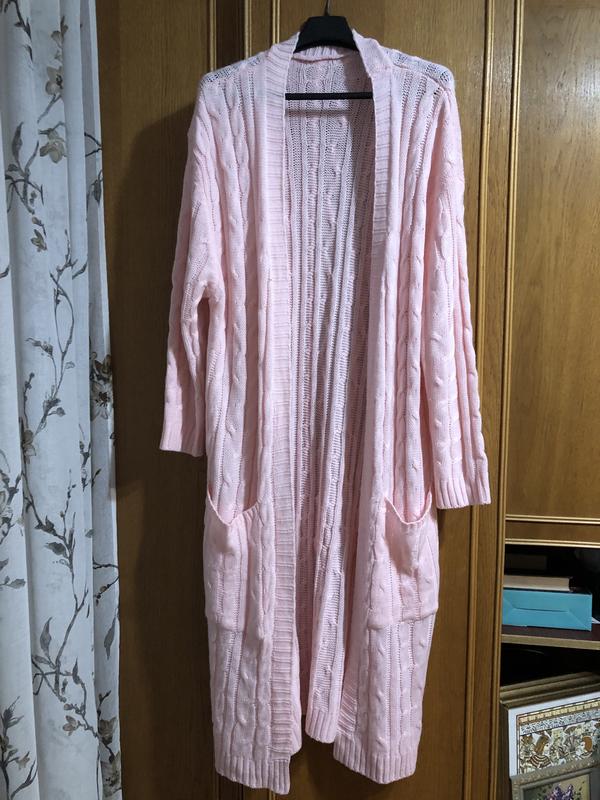 Вязаный кардиган, оверсайз, длина 110, рукав от горловины 71, ширина по спинке под руками 68, ширина передних полочек по 30.