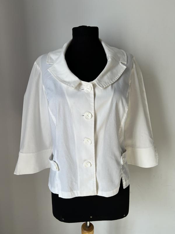 Кардиган белого цвета бренда Multiples в идеальном состоянии из хлопка. Размер S-М. Замеры: от проймы до проймы- 46 см, пот-41 см, длина рукава-44 см, из них манжет-8 см, длина по спине-55 см.