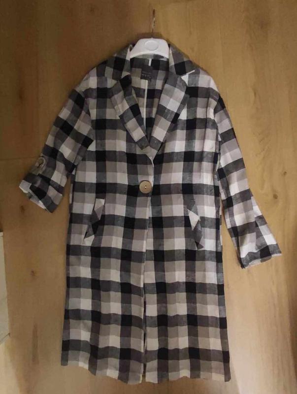 Стильний,довгий ,тонкий піджак/жакет/кардиган Primark,без підкладки,розмір 46-48, чудова якість-льон/віскоза,в оригіналі виглядає краще,ніж на фото,стан нового,без дефектів,,заміри: довжина по спинці 102 см,довжина рукава 62 см.ПОГ48 см.