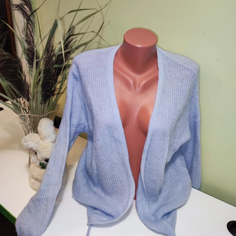 Пропоную вашій увазі дуже приємний до тіла, ніжний кардиган Розмір: на бірці M/L Стан: дуже хороший ✅ Дефекти: де-не-де можуть бути маленькі ковтунці ✅ Колір: ніжно блакитний Принт: не має Сезон: /весна/зима/осінь Склад: 36% шерсть, 32% поліамід, 17% альпака, 15% акрил Заміри: НОГ 49см Довжина 66см довжина рукава 54 см O/SH