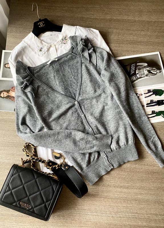 Базовый кардиган на пуговицах с рюшами. Состояние отлично. Размер L-XL Длина-63 см ПОГ-52 см Рукав-63 см
