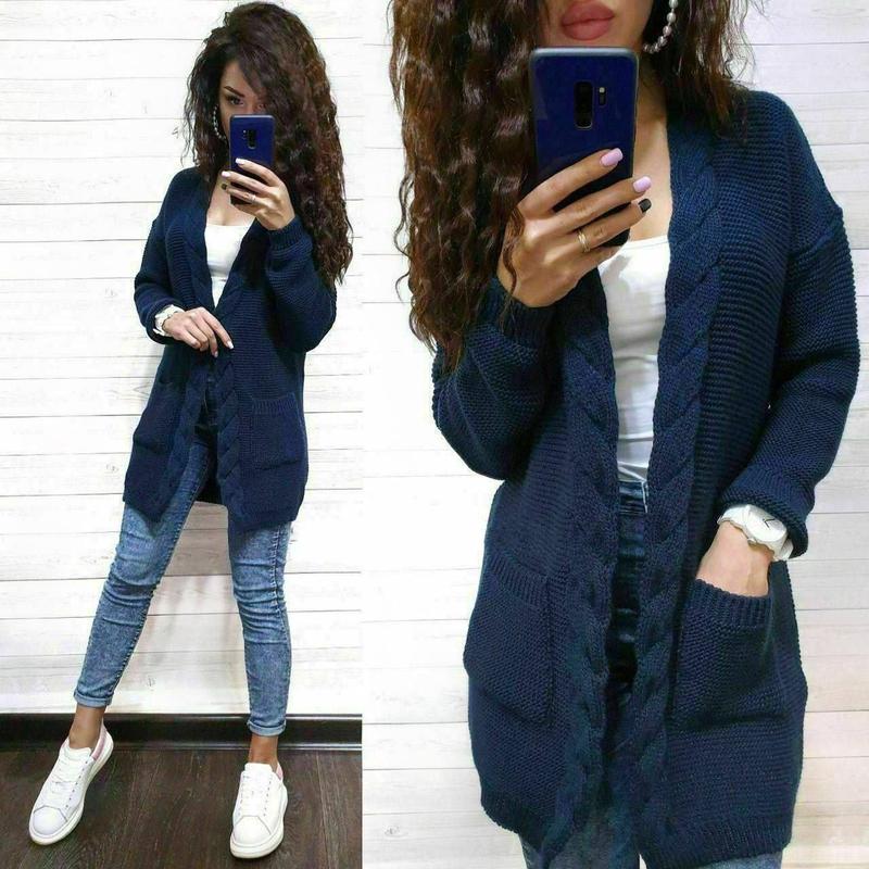 Кардиган Коса Машинна в'язка 50% вовна, 50% акрил Розмір єдиний 42-46 Колір блакитний, темно-синій, бордо, молоко, сірий, пудра Всі фото РЕАЛ❗️ 4️⃣1️⃣ Ціна 879 грн. 🔹 Довжина по спинці 80-82 см 🔹 Довжина рукава від шиї 80 см 🔹 Довжина рукава від плеча 58 см 🔹 Об'єм по грудях 100-102 см
