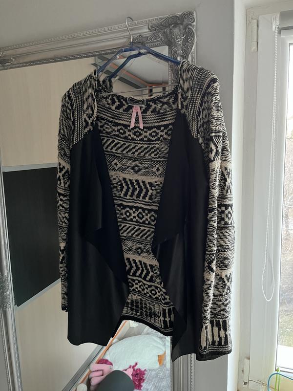 Кардиган вязаный, спереди кожзамешка