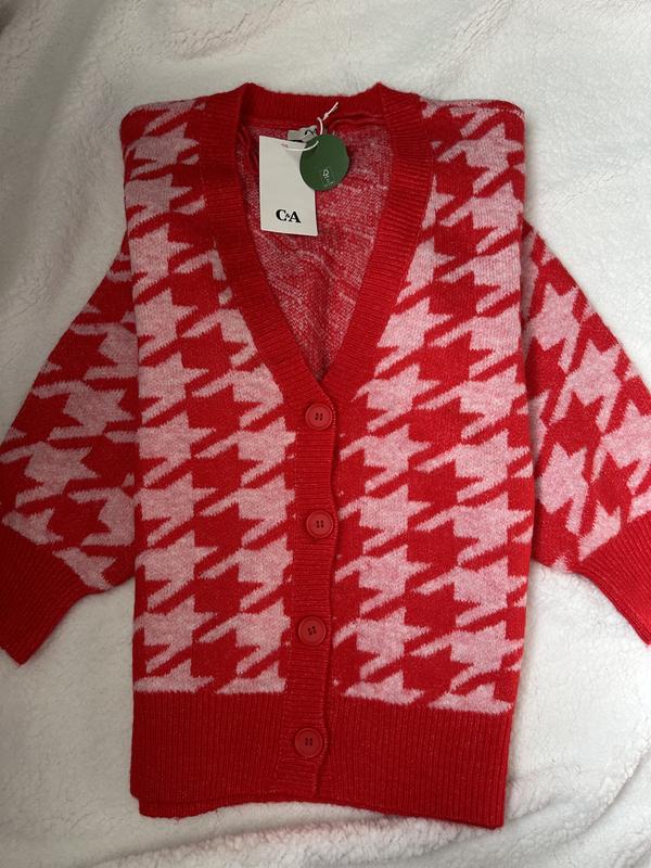 Красный кардиган C&A в принт гусиная лапка, очень мягкий и приятный к телу, новый