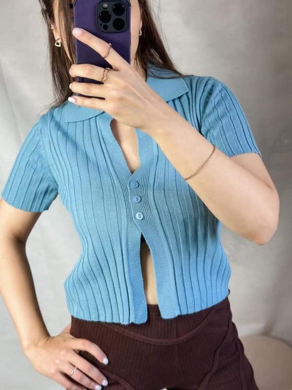 кофта вкорочена з комірцем Широкий рубчик пікантні розрізі стильна та сучасна