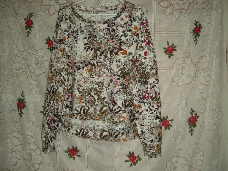 Шикарная кофта,фирменная,мягкая,приятная к телу,на белом фоне яркие букеты цветов,57%шерсть,40%вискоза,3%эластан,манжет на вырезе вокруг шеи,низ рукавов-широкие манжеты,объем груди-118см.,длина рукава-51см.,рукав приспущенный,длина кофты впереди-51см.,длина сзади-60см.