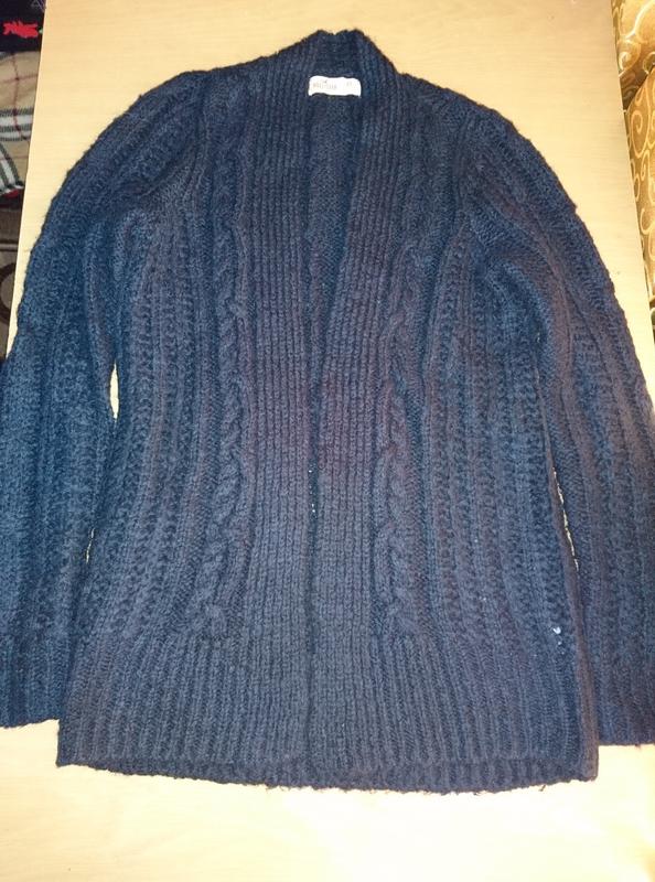 Тёплая тёмно-синяя накидка/кофта Hollister. Слегка в катышках. Длина 64см. Длина рукава 60см. Ширина плеч 33см. Тянется.