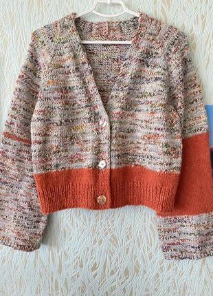 Тёплый и уютный Кардиган оверсайз "Pavone" с удлинённым регланом для холодных вечеров. Размер One size. Замеры пришлю по запросу. Для Кардигана оверсайз "Pavone" использован микс итальянской ниточки с эффектом фламме - Cofil 50% меринос, 50% па + мохер с вискозой. Пуговицы Кардигана оверсайз "Pavone" сделаны из ракушки - итальянского производства. Кардиган оверсайз "Pavone" связан спицами без швов вкруговую. Ручная работа. Кардиган оверсайз "Pavone" в единственном экземпляре. Во избежание деформации изделия рекомендуется ручная стирка. Дополнительные характеристики: Цвет : Зеленый Цвет : Коричневый Цвет : Красный Цвет : Оранжевый Цвет : Серый Цвет : Синий Сезон: Зима